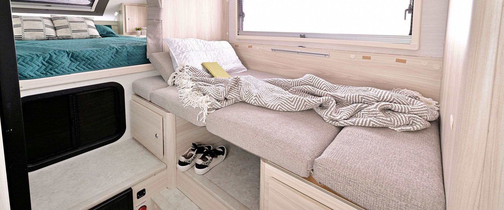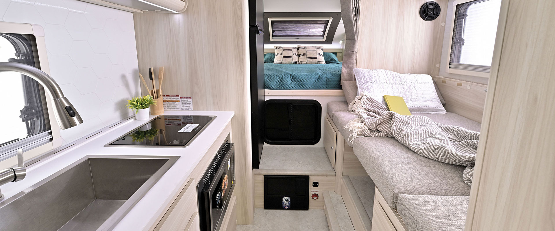 The nuCamp Cirrus 920 Truck Camper is expertly crafted to deliver superior comfort and functionality for your camping adventures. Its expansive interior features premium finishes and ample room for both relaxation and entertainment, setting a new standard in truck camper luxury.
