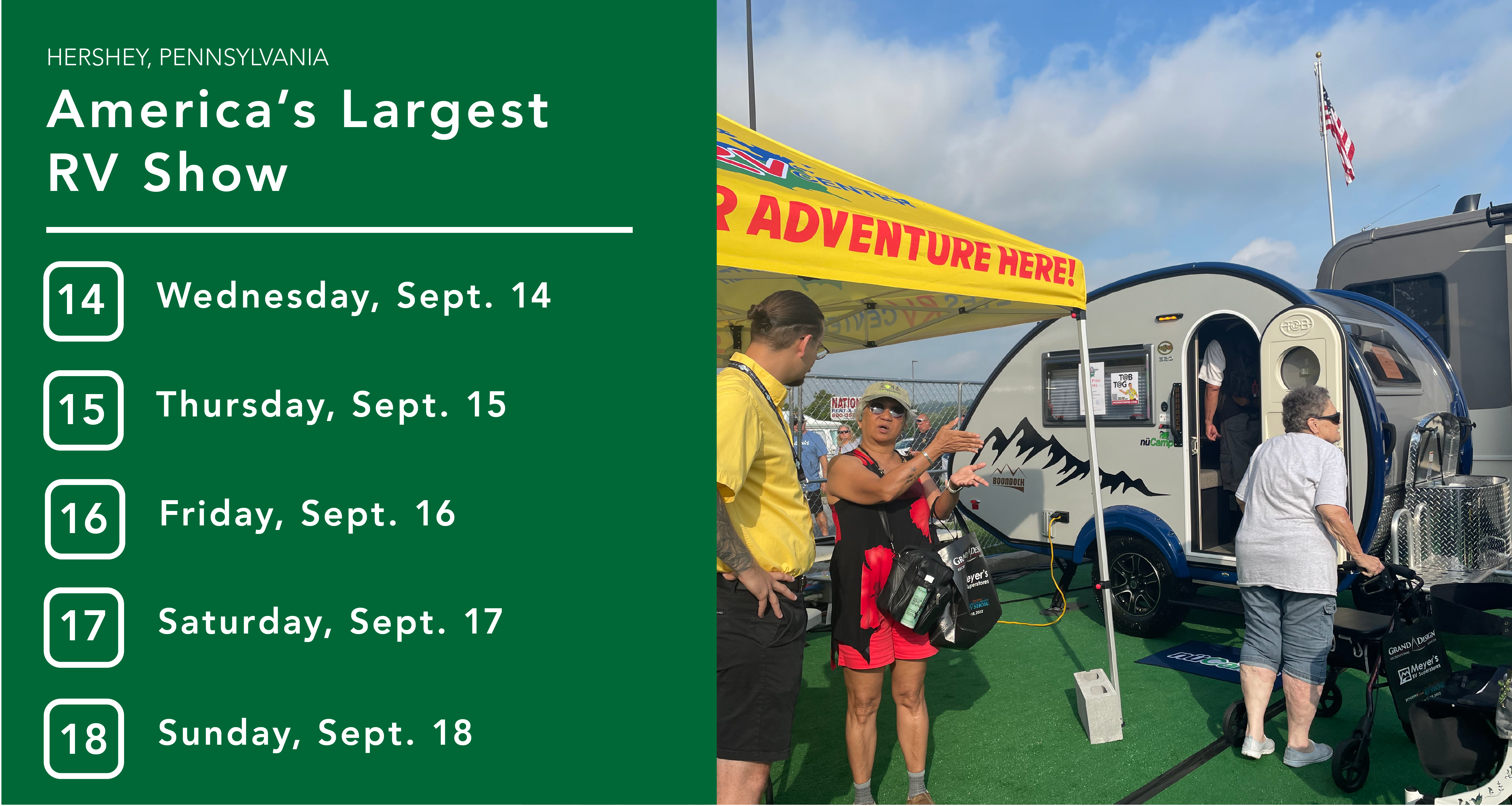 Hershey America’s Largest RV Show® is open September 14-18, 2022.
