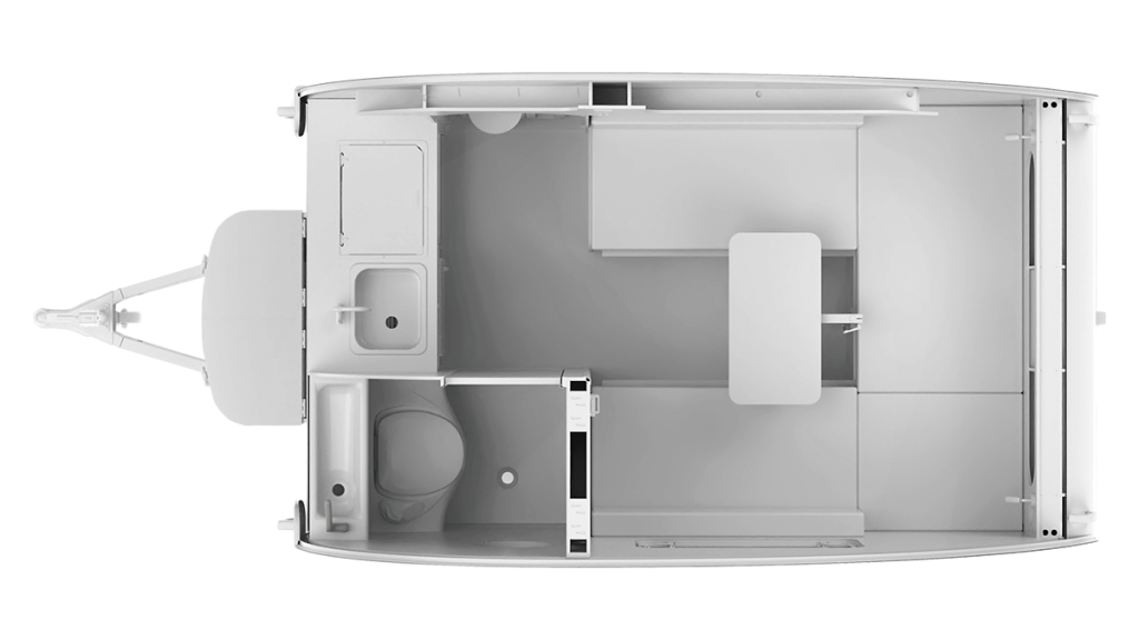 The TAB 320 LITE teardrop camper is a compact and stylish travel trailer designed for those new to teardrop adventures. Its retro teardrop shape is aerodynamic and easy to tow. This tiny camper features comfortable living quarters with amenities such as a fully equipped kitchenette, a spacious sleeping area, ample storage, and even a bathroom!