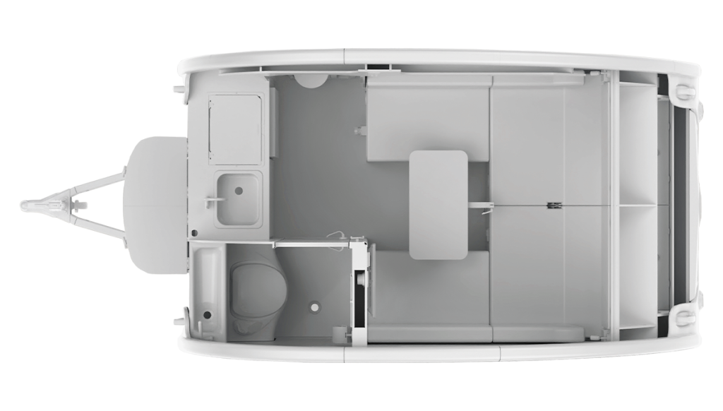 The TAB Teardrop Camper is exceptionally lightweight, making it easy to tow and maneuver. It is ideal for those who prioritize mobility and convenience without compromising comfort. Inside the camper, you will find a spacious dinette that converts into a cozy sleeping area. The split cushions offer multiple configuration options, allowing you to customize your sleeping arrangements, whether traveling alone or with a partner.