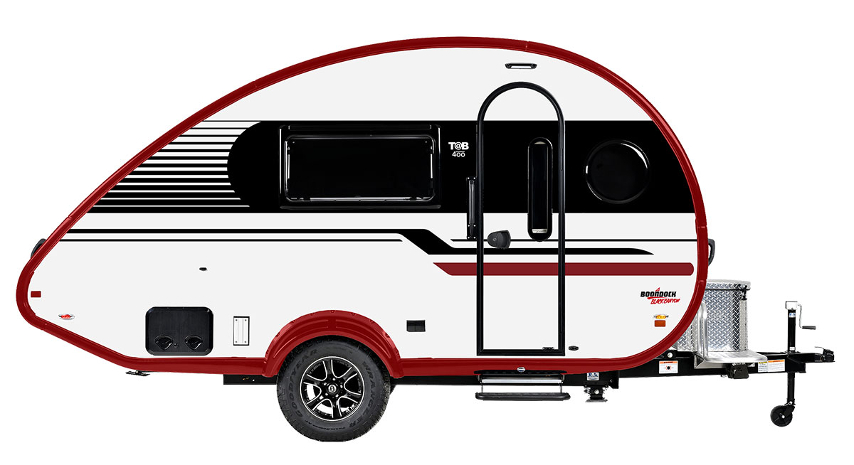 The TAB 400 is the ideal choice if you're drawn to the unique shape of teardrop trailers but require extra space. This versatile trailer offers a comfortable dinette, a dedicated queen-size bed, a spacious wet bath, a galley kitchen, and ample storage. One thing that sets it apart is the option to have a hidden bunk, easily accessible when needed and cleverly concealed when not in use. This makes the TAB 400 perfect for small families or grandparents who enjoy occasional camping trips with their grandchildren. With its comprehensive features, the TAB 400 truly becomes your home on wheels.