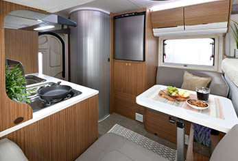 The Cirrus 720 truck camper is another step forward into the truck camper market – and one you have come to expect from nuCamp. From its modern, radiused residential styled cabinetry to its innovative construction with aluminum and Coosa framed technology, the Cirrus 720 spares no expense in design. The ALDE® hydronic central heat/ hot water system and industry-leading Ohio Amish quality craftsmanship place the 720 in a league all its own. The Cirrus 720 gives you an innovative fully-featured ¾-ton truck camper complete with options at 2,100 lbs.